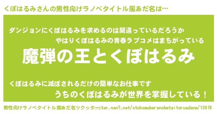 | 胡散臭い通販商品みたいなあだ名 | 『世界中を虜にした世界で10本だけ現存している希少なブランデー…その名も「くぼはるみ」』 |