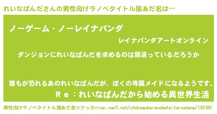 | 胡散臭い通販商品みたいなあだ名 | 『伝統あるサプリメント…その名も「れいなぱんだ」』 |