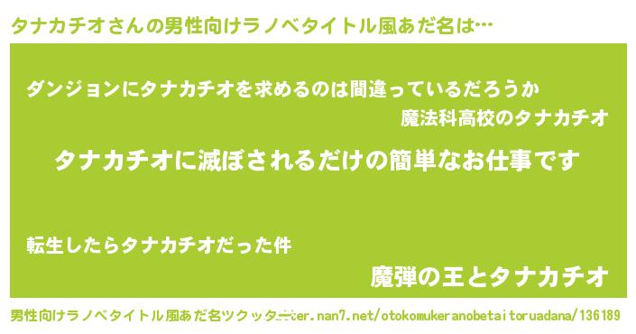 | 伝説のあだ名 | 『覚醒した遊び人タナカチオ』 |
