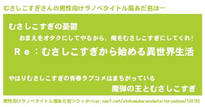 | 女子向けラノベタイトル風あだ名 | 『むさしこすぎストレイドッグス』 |