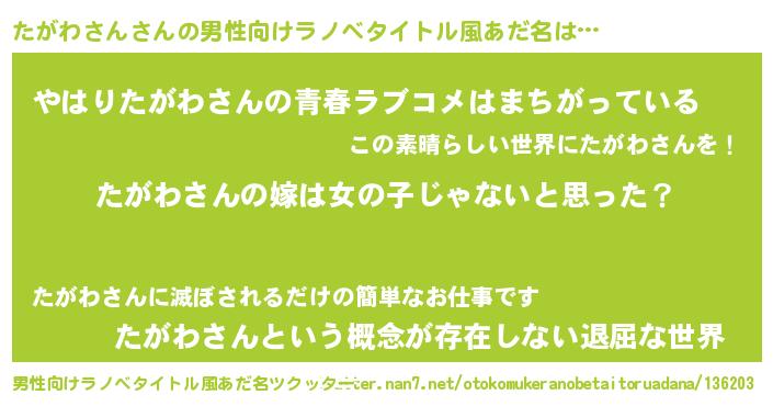 | 女子向けラノベタイトル風あだ名 | 『たがわさん様がみてる』 |