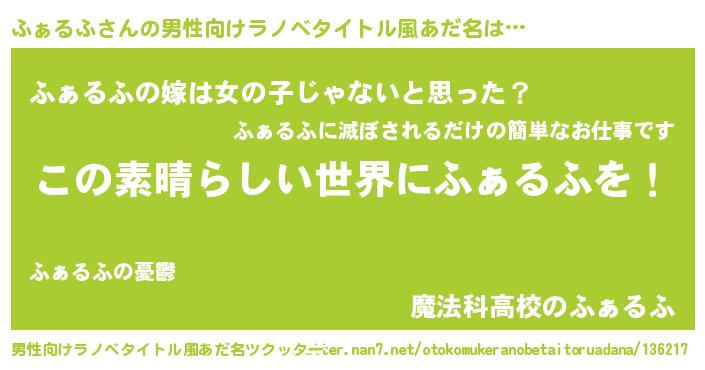 | 胡散臭い通販商品みたいなあだ名 | 『あなたにだけ特別に提供する限定10本のレアな日本酒…その名も「ふぁるふ」』 |