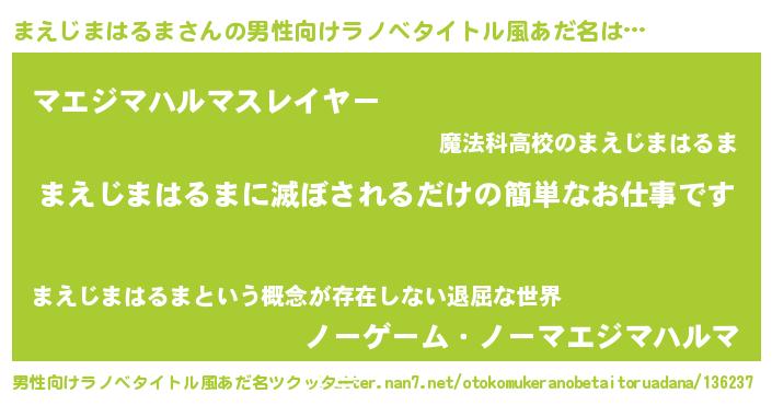 | ヘコむあだ名 | 『まえじまはるま(苦笑)』『まえを』 |