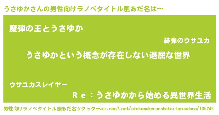 | ヒーロー風カッコイイあだ名 | 『ネオウサユカ』『仮面ウサダー』 |