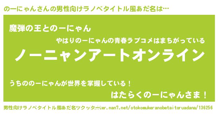 | ヒーロー風カッコイイあだ名 | 『スーパーノーニャン』『仮面ノーダー』 |