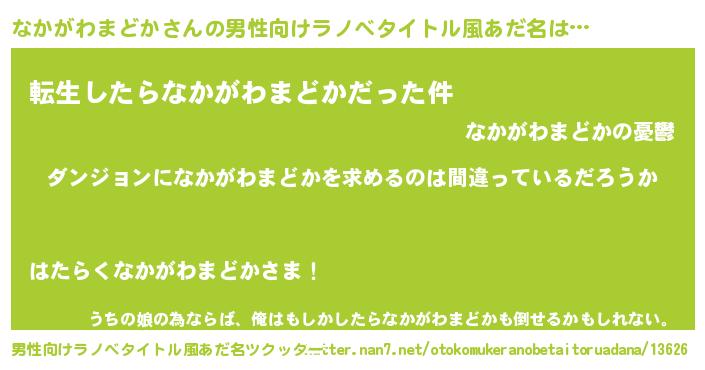 | 女子向けラノベタイトル風あだ名 | 『なかがわまどかは平凡を望む』 |