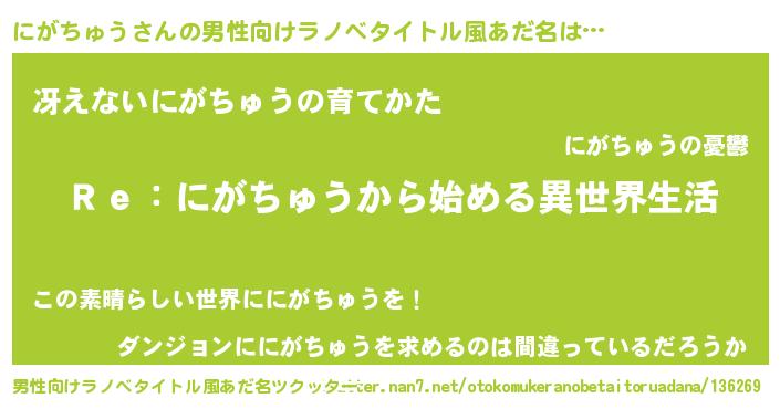 | ヒーロー風カッコイイあだ名 | 『サイバー戦士ニガチュウ』 |