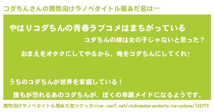 | 女子向けラノベタイトル風あだ名 | 『コダちん夫妻のなれそめ』 |
