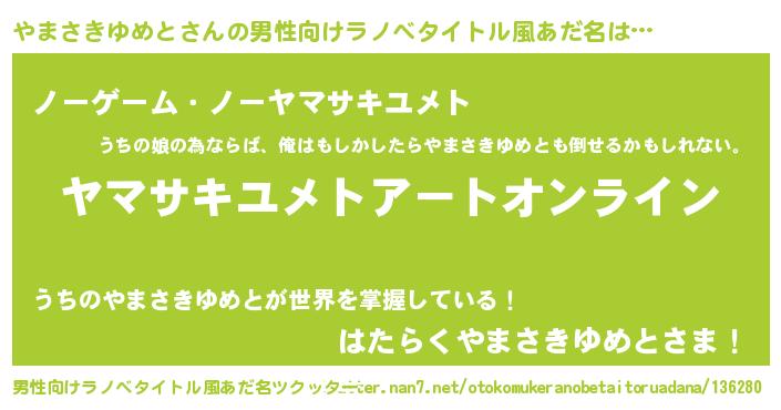 | 女子向けラノベタイトル風あだ名 | 『誰かこのやまさきゆめとを説明してください! ~契約から始まるウェディング~』 |
