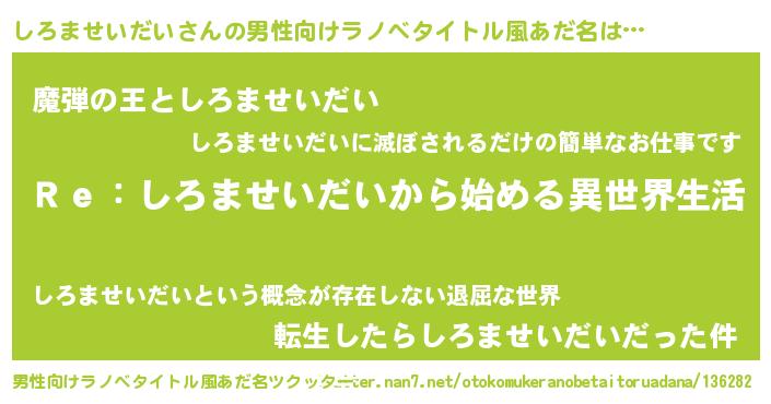 | ヘコむあだ名 | 『しろませいだい(笑)』『しろもー』 |
