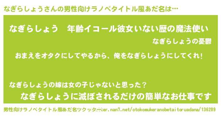 なぎらしょうさんの男性向けラノベタイトル風あだ名をツクッター!