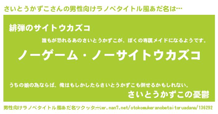 | ヒーロー風カッコイイあだ名 | 『慈愛の使者さいとうかずこ』 |