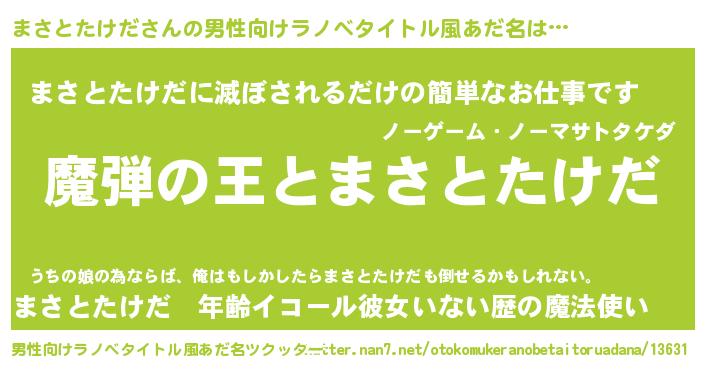 | 小説 | 最初の1行『まさとたけだ「その地では、絶望は白い色をしている」』 |