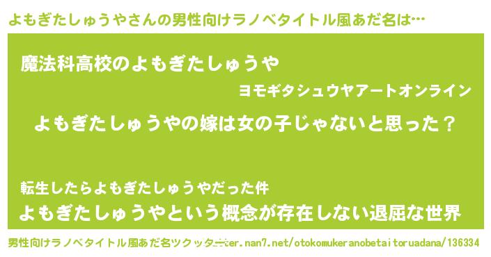 | ヘコむあだ名 | 『よもっちょ』『よもぎたしゅうや(笑)』 |
