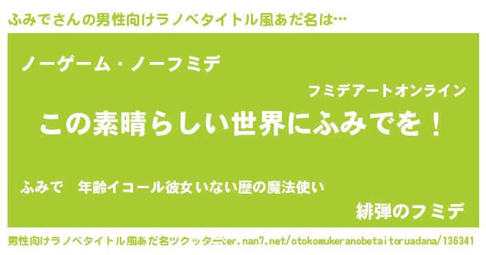 | 女子向けラノベタイトル風あだ名 | 『悪役ふみでに転生したようですが、知った事ではありません』 |