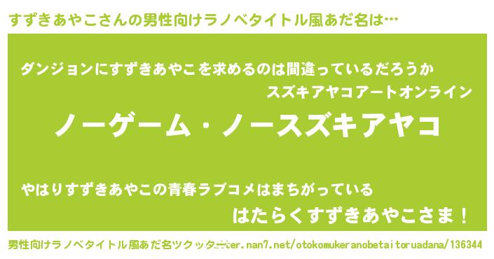 | 女子向けラノベタイトル風あだ名 | 『死神すずきあやこの再婚』 |