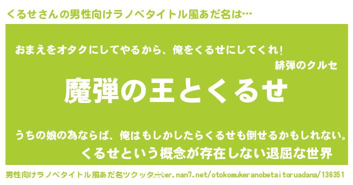| 意味不明あだ名 | 『住所不定無職くるせ(11歳)』『自称くるせ』 |