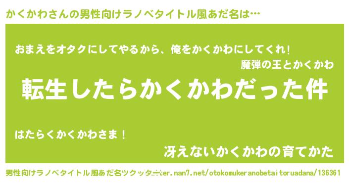 | 胡散臭い通販商品みたいなあだ名 | 『お金では代えられない隕石のかけら…その名も「かくかわ」』 |