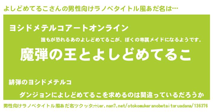 | 意味不明あだ名 | 『住所不定無職よしどめてるこ(59歳)』 |