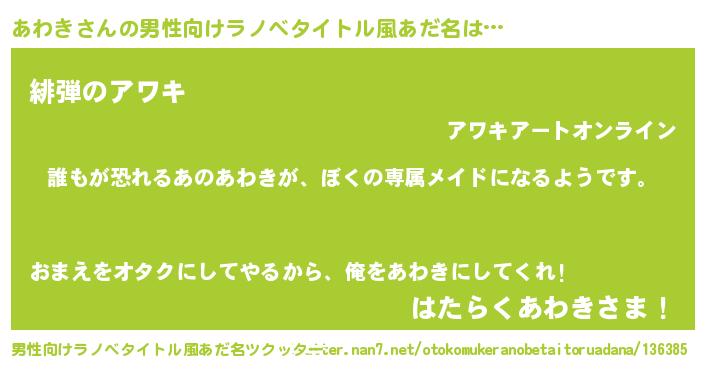 | ヒーロー風カッコイイあだ名 | 『ネオアワキ』『スーパーアワキ』 |