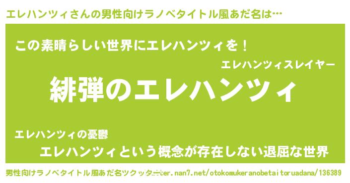| ヒーロー風カッコイイあだ名 | 『仮面エレダー』『ネオエレハンツィ』 |