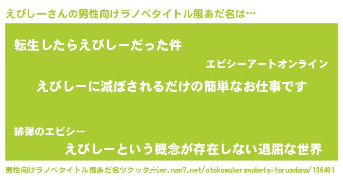 えびしーさんの男性向けラノベタイトル風あだ名をツクッター!
