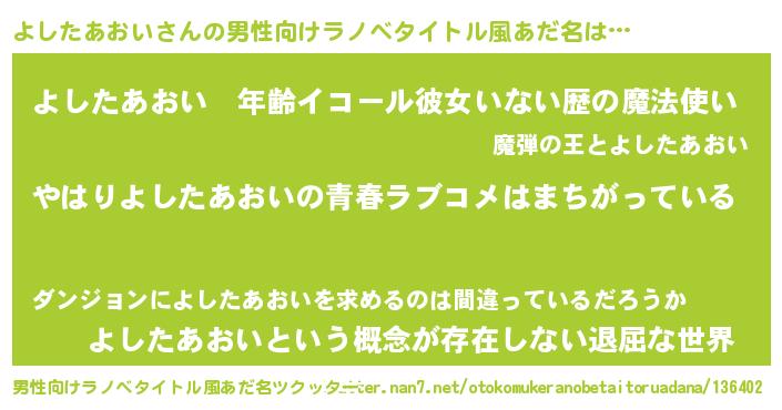 | 欧米人風あだ名 | 『よしたあおいクリステル』 |