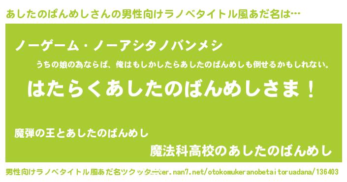 | 胡散臭い通販商品みたいなあだ名 | 『100人中100人が認めたマグネット磁石…その名も「あしたのばんめし」』 |