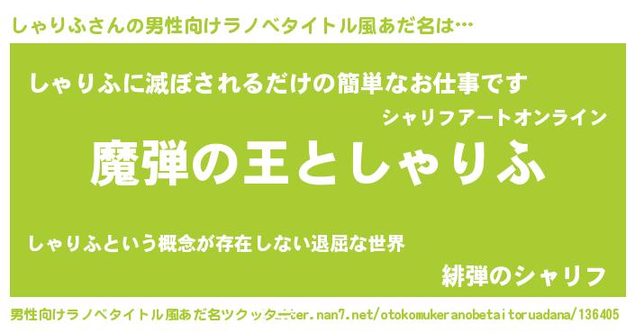 | 意味不明あだ名 | 『住所不定無職しゃりふ(3歳)』 |