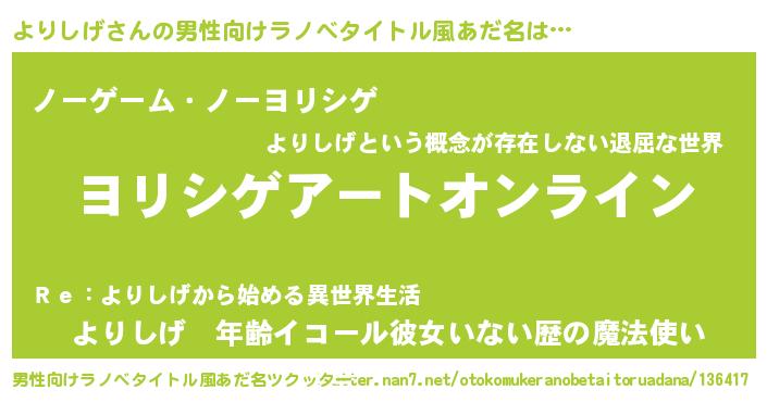 | ヘコむあだ名 | 『よりにー』『よりしげ(笑)』 |