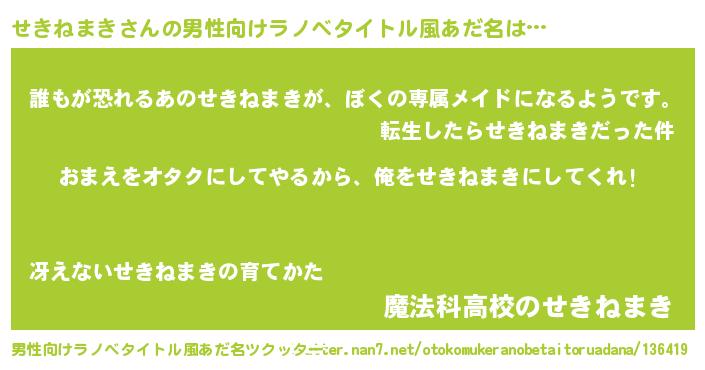 | 伝説のあだ名 | 『人々から恐れられる占い師せきねまき』 |