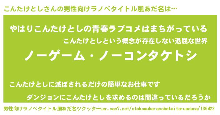 | 女子向けラノベタイトル風あだ名 | 『死神こんたけとしの再婚』 |