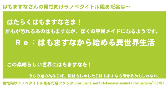 | 意味不明あだ名 | 『自称はもますな』『永久保存はもますな』 |