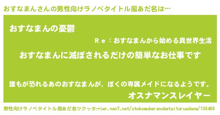 | ヘコむあだ名 | 『おすふぇ~』『おすなまん(笑)』 |