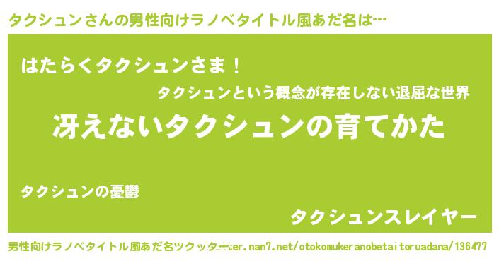| ヘコむあだ名 | 『タクシュン(笑)』『タクにー』 |