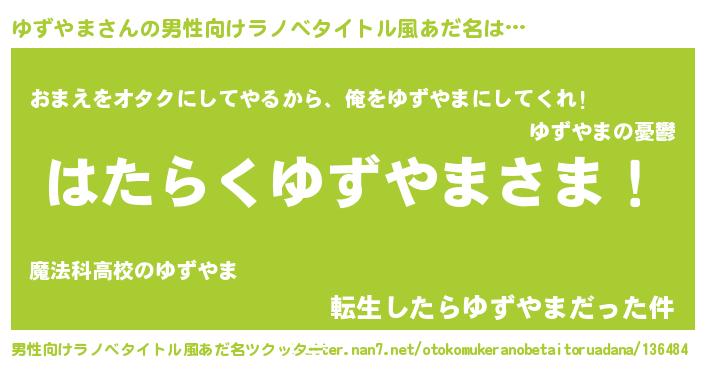 | 胡散臭い通販商品みたいなあだ名 | 『100人中100人が認めたマグネット磁石…その名も「ゆずやま」』 |