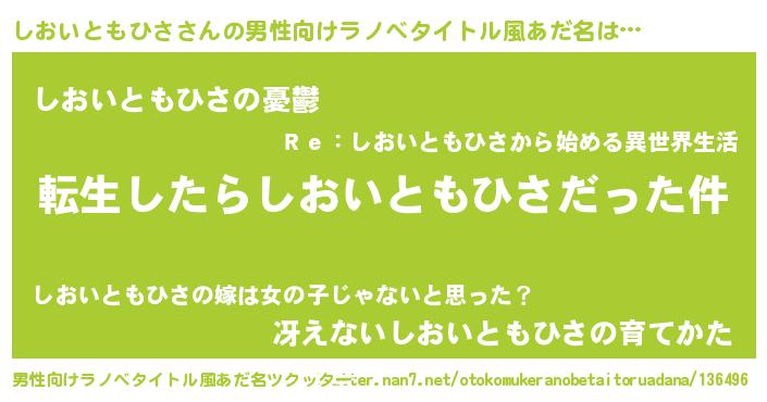 | 胡散臭い通販商品みたいなあだ名 | 『モテモテ間違いなしブレスレット…その名も「しおいともひさ」』 |