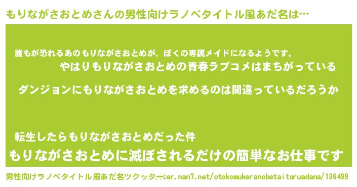 | 意味不明あだ名 | 『とにかく怪しいもりながさおとめ』 |