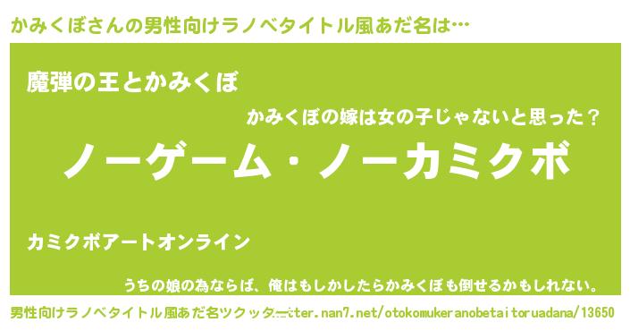 | 女子向けラノベタイトル風あだ名 | 『死神かみくぼの再婚』 |