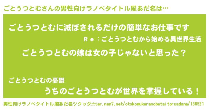| 意味不明あだ名 | 『とにかく怪しいごとうつとむ』 |