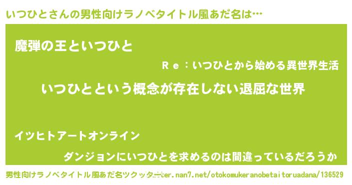 | ヒーロー風カッコイイあだ名 | 『ネオイツヒト』『仮面イツダー』 |
