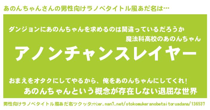 | 胡散臭い通販商品みたいなあだ名 | 『信頼と実績のネックレス…その名も「あのんちゃん」』 |