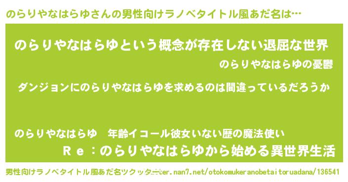 | 胡散臭い通販商品みたいなあだ名 | 『信頼と実績のペンダント…その名も「のらりやなはらゆ」』 |