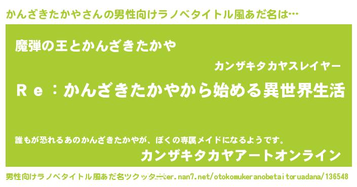 | 女子向けラノベタイトル風あだ名 | 『闇のかんざきたかや』 |