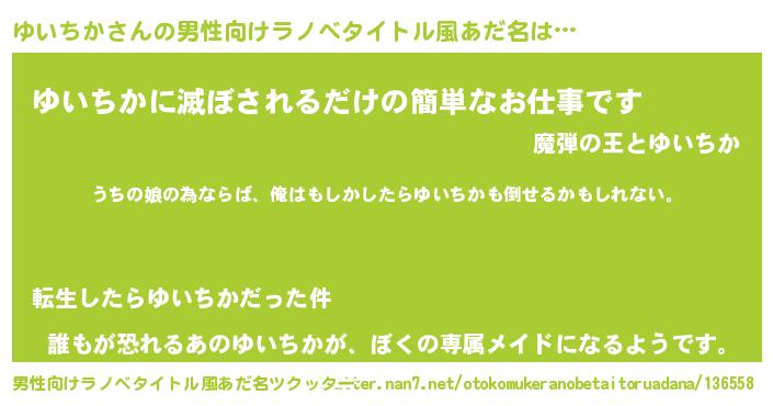 | 女子向けラノベタイトル風あだ名 | 『ゆいちか伯爵の花嫁』 |