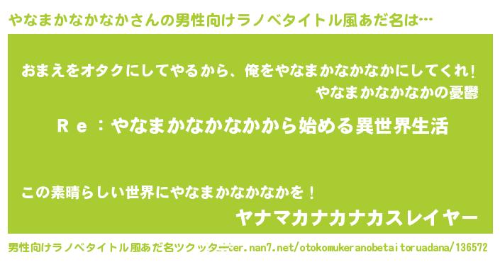 | 女子向けラノベタイトル風あだ名 | 『闇のやなまかなかなか』 |