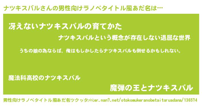 | 女子向けラノベタイトル風あだ名 | 『ナツキスバルの婚約者』 |
