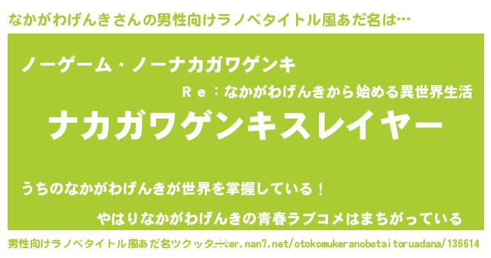 | 欧米人風あだ名 | 『トリンドルなかがわげんき』 |
