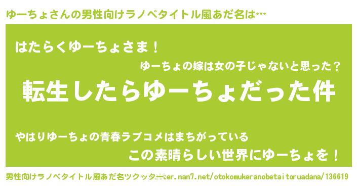 | 料理風あだ名 | 『ゆーちょごはん』 |