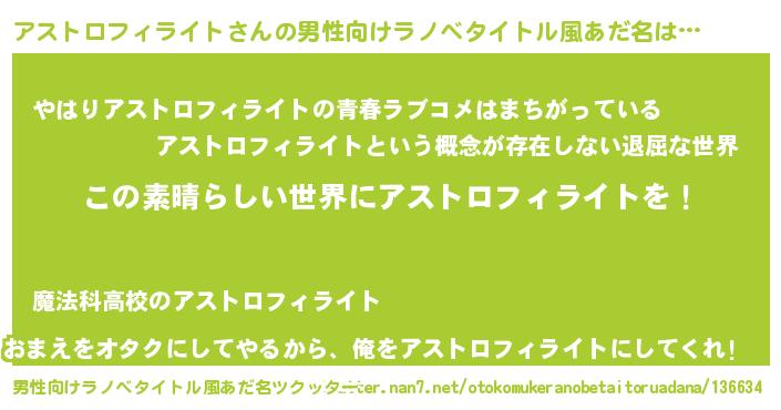 | 意味不明あだ名 | 『住所不定無職アストロフィライト(71歳)』 |